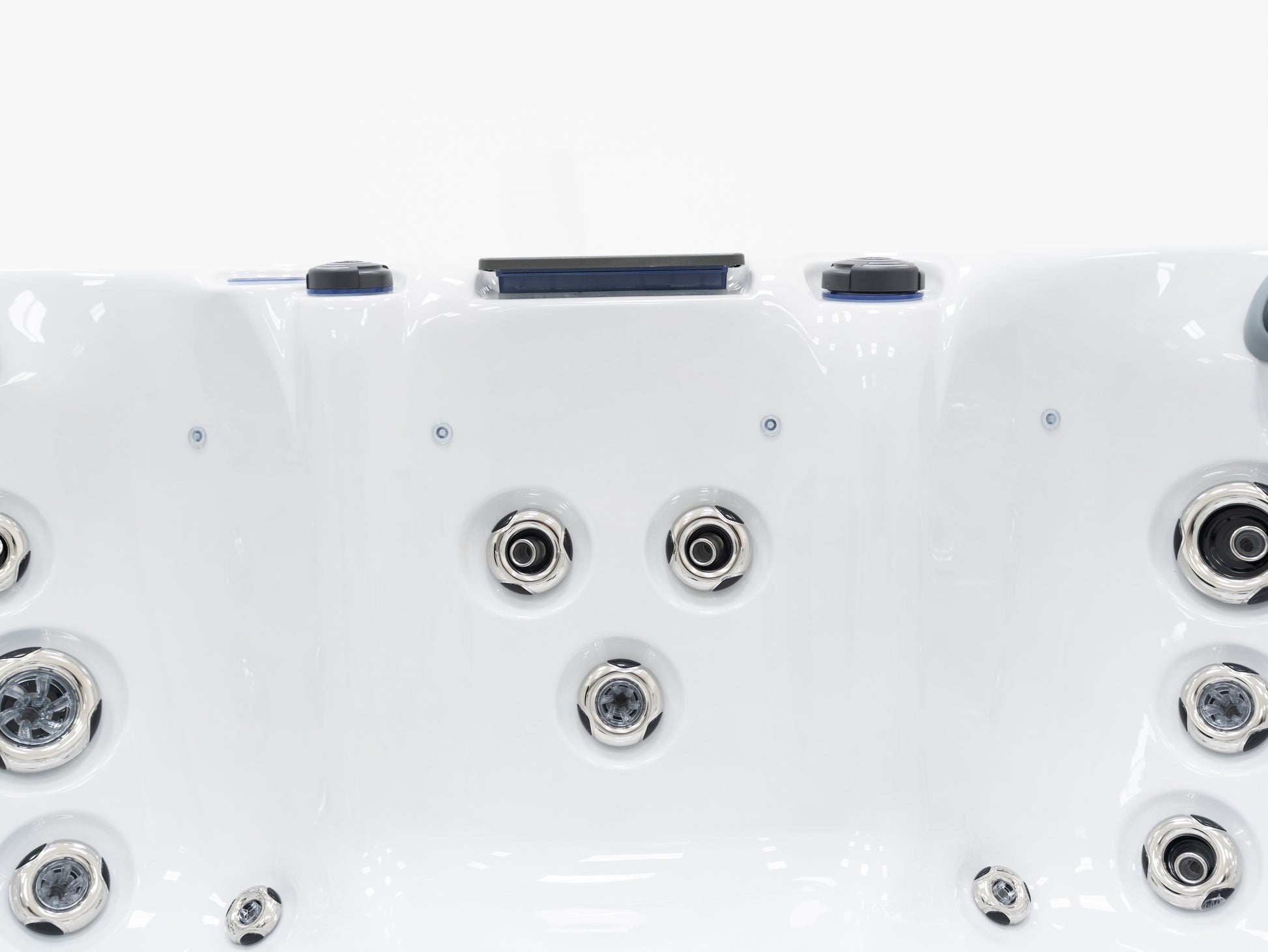 Våre dyser er utviklet for å gi jevn trykkfordeling og målrettet massasje av rygg, skuldre og ben. Justerbare vann– og luftstråler lar deg skreddersy intensiteten etter behov for optimal komfort.