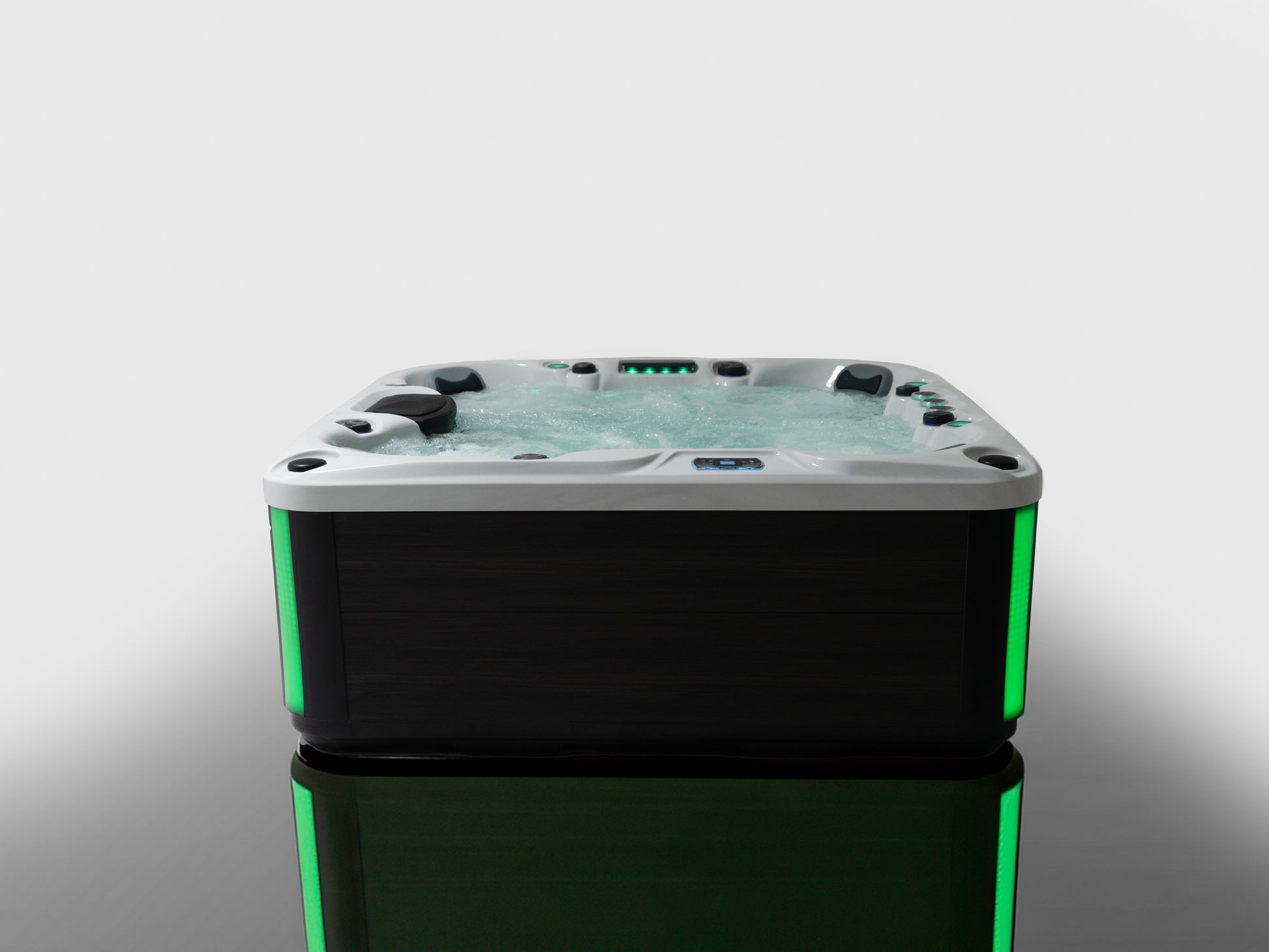 Den elegante Sterling Silver-akrylskålen og grå sidepaneler gir et moderne og eksklusivt uttrykk, samtidig som konstruksjonen er godt tilpasset nordiske forhold. Integrert LED-belysning rundt hele karet og i hjørnene skaper en avslappende atmosfære, mens det innebygde Bluetooth-lydsystemet med to høyttalere gjør opplevelsen komplett. Alle funksjoner styres intuitivt via Gecko IN.K300-kontrollpanelet.